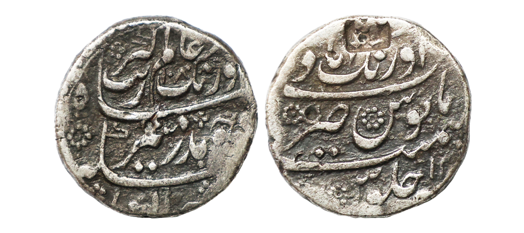 Aurangzeb (AH 1068-1118 / 1658-1707 AD), Silver Rupee, 11.49g, Akbarnagar Mint, AH 1114, RY 46, Badr-e-munir type, almost mint name on rev bottom. (KM # 300.7). Very Fine.