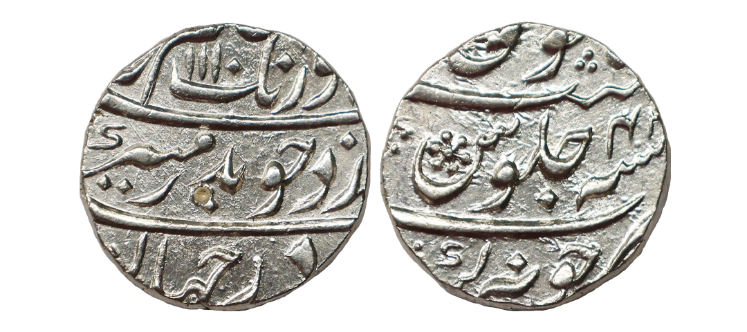 Aurangzeb (AH 1068-1118, 1658-1707 AD), Silver ½ Rupee, 5.26 gms, Itawa Mint, AH 1102, RY 32(error as 23), very fine, rare.