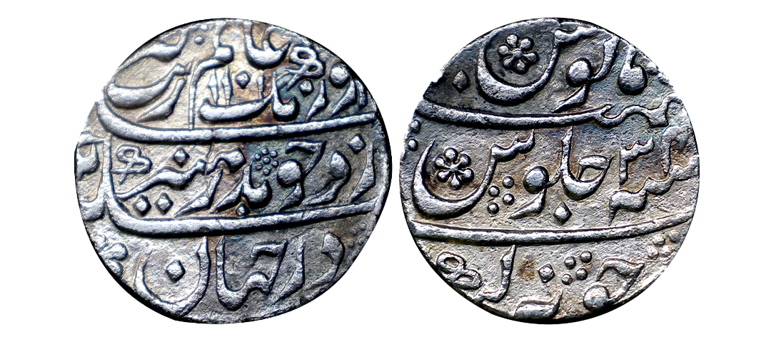 Aurangzeb (AH 1068-1118, 1658-1707 AD), Silver ½ Rupee, 5.26 gms, Itawa Mint, AH 1102, RY 32(error as 23), very fine, rare.