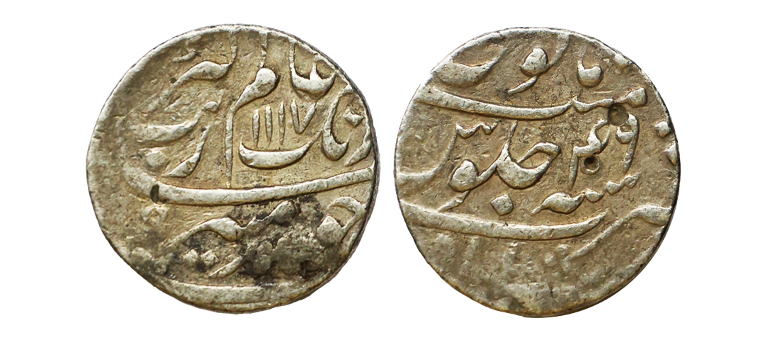 Aurangzeb (AH 1068-1118, 1658-1707 AD), Copper ½ Paisa, 6.59 gms, Bandar Machhlipatan Mint, AH 1117, RY 50, KM #285.6, fine, scarce.