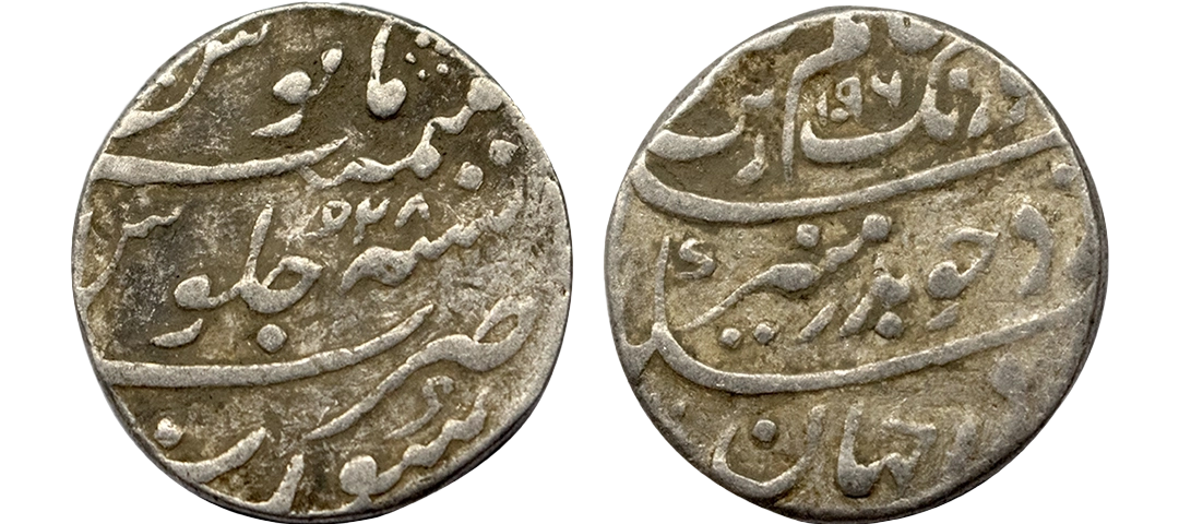 Aurangzeb (AH 1068-1118 / 1658-1707 AD), Silver Rupee, 11.45g, Solapur Mint, AH 1096, RY 29, Badr-e-munir type. (KM # 300.82). Very Fine+.