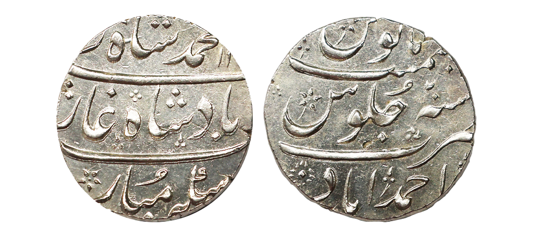 Muhammad Shah (AH 1131-1161, 1719–1748 AD), Silver Rupee, 11.60 gms, Ahmadabad Mint, RY 2, KM # 436.1, very fine+, very scarce.