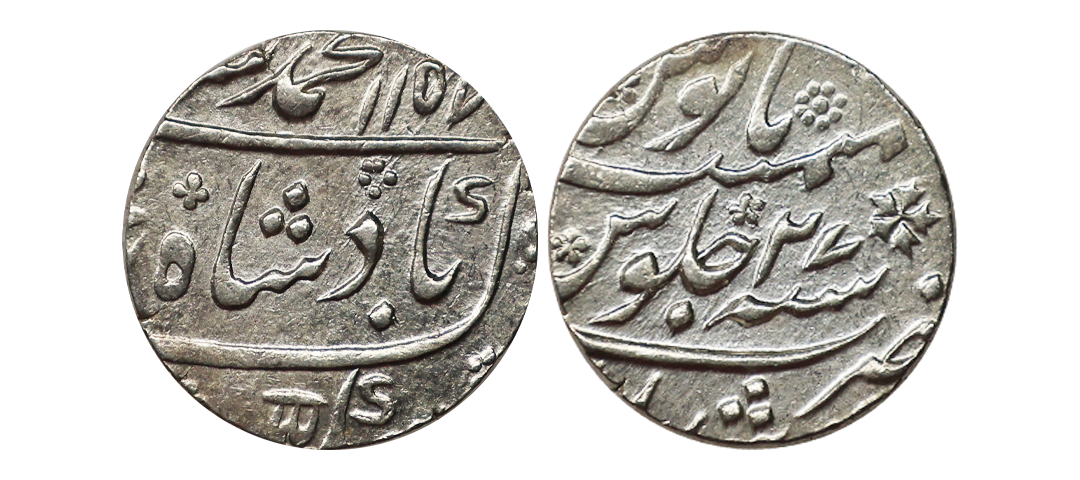 Muhammad Shah (AH 1131-1161, 1719-1748 AD), Silver Rupee, 11.55 gms, Khambayat Mint, RY 13, KM #436.34, very fine, scarce.