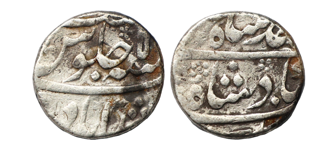 Ahmad Shah Bahadur, Silver Rupee, 11.60 gms, Murshidabad Mint, AH RY 5, Maratha Mint Mark, very fine, very rare.