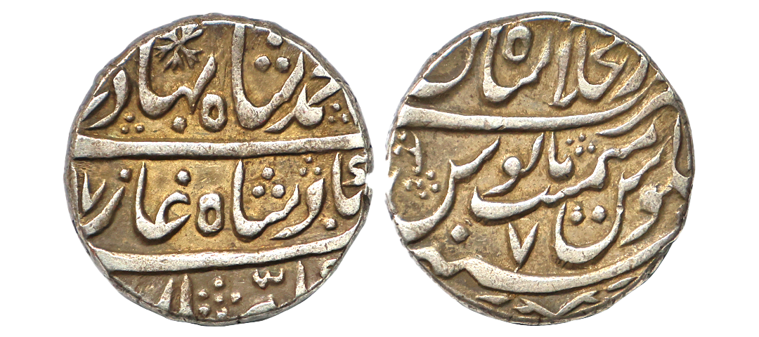 Ahmad Shah Bahadur (AH 1161-1167, 1748-1754 AD), Silver Rupee, 11.31 gms, Dar al Khilafa Shahjahanabad Mint, AH 1167, RY 7, KM #446.17, very fine, scarce.