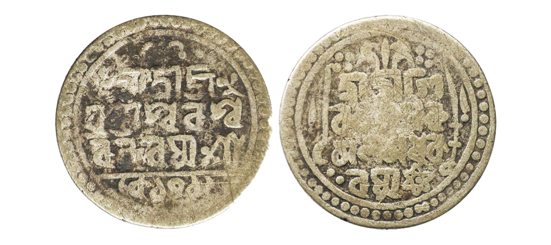 Jaintiapur, Jatra Narayan (SE 1704-1707/1782-1785 AD), Silver Rupee, 10.56 gms, SE 1704, Obv. Sri Sri Si/va Charana Ka/mala Madhu Ka/rasya and a six-pointed star, Rev. Sri Sri Ja/yantipura Pu/randarasya Sa/ke1704, flowers at the left and right of the top line, with petals of elongated dots, within a double circled border with beads in between, KM # 199, RB # M2a, about very fine, rare.