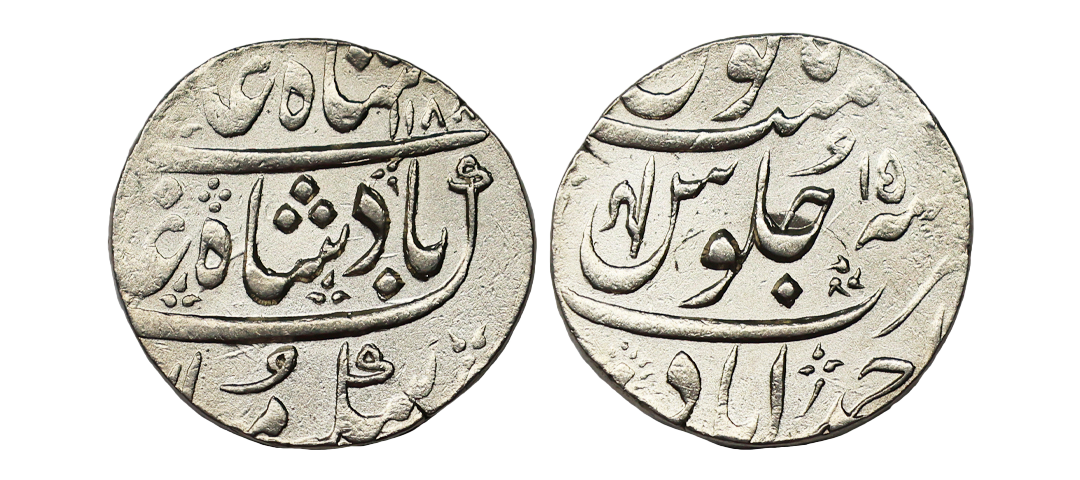 Jaintiapur, Ram Simha II (SE 1712-1754, 1790-1832 AD), Silver Rupee, 8.83 gms, SE 1712, Obv. Sri Sri Si/va Charana Ka/mala Madhu Ka/rasya and a six-pointed star, Rev. Sri Sri Ja/yantipura Pu/randarasya Sa/ke1712, KM # 206, very fine, rare.