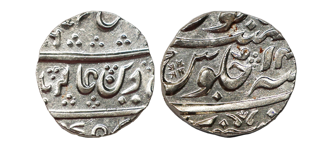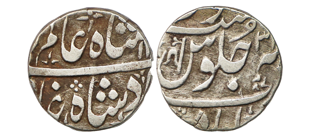 Maratha Confederacy, INO Shah Alam II, Silver ½ Rupee, 5.61 gms, Ahmadabad Mint(by type), Ram in nagari, ankushi symbol, KM #43, very fine, rare.
