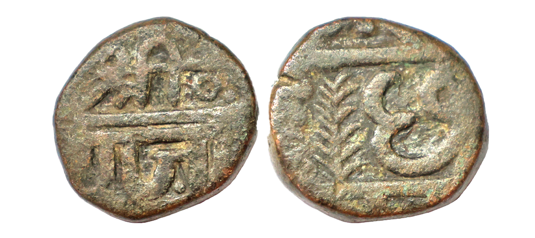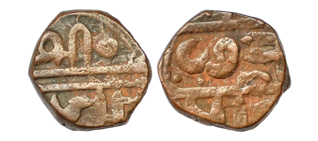 Marathas, Chhatrapati Shivaji Maharaj, Copper Shivrai Paisa, 9.69 gms, do dandi type, jhar on right, about very fine, very scarce.