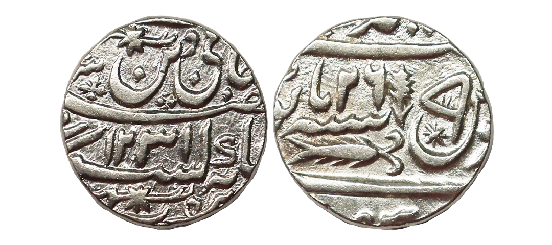 Awadh State, Sadat Ali Khan (AH 1212-1229, 1798-1814 AD), INO Muhammad Shah Silver Rupee, 11.39 gms, Muhammadabad Banaras Mint, AH 11xx, RY 18, M&K #1.49, very fine+, very scarce.