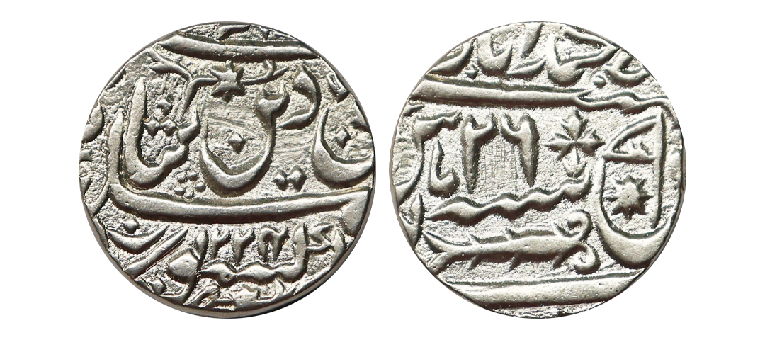 Awadh State, Shuja ud Daula (AH 1167-1188, 1754-1775 AD), INO Shah Alam II (AH 1174-1221, 1759-1806 AD), Silver Rupee, Balwantnagar (Jhansi) Mint (visible at bottom on rev), RY 3, trident as a mint mark, The forces of Awadh captured Jhansi on 31 January, 1762 AD and Shuja ud Daulah the Nawab Vazir of Awadh appointed Muhammad Bashir as the Faujdar of Jhansi. Malhar Rao Holkar the Maratha warrior recaptured Jhansi 1766 AD, Unlisted in KM, Kapoor & Master Page 32 Ref 3.13, extra fine, 11.31g, very scarce.