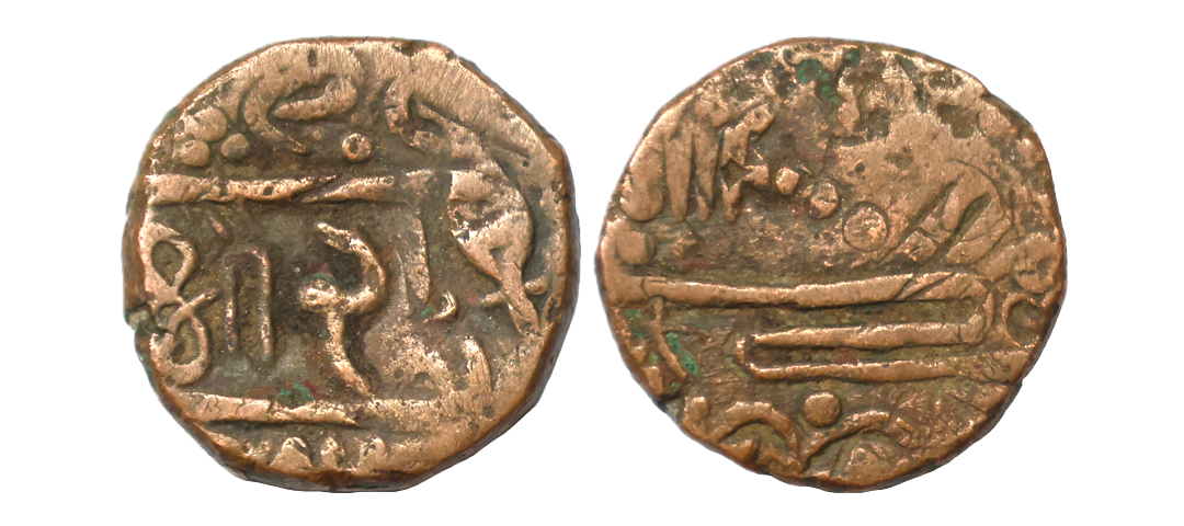Baroda State, Khande Rao (AH 1273-1287, 1856-1870 AD), Copper Paisa, 7.08 gms, Amreli Mint, Nagari Sri, Kha, Ga & scimiter on obv, KM # Y7.3, about very fine, scarce.