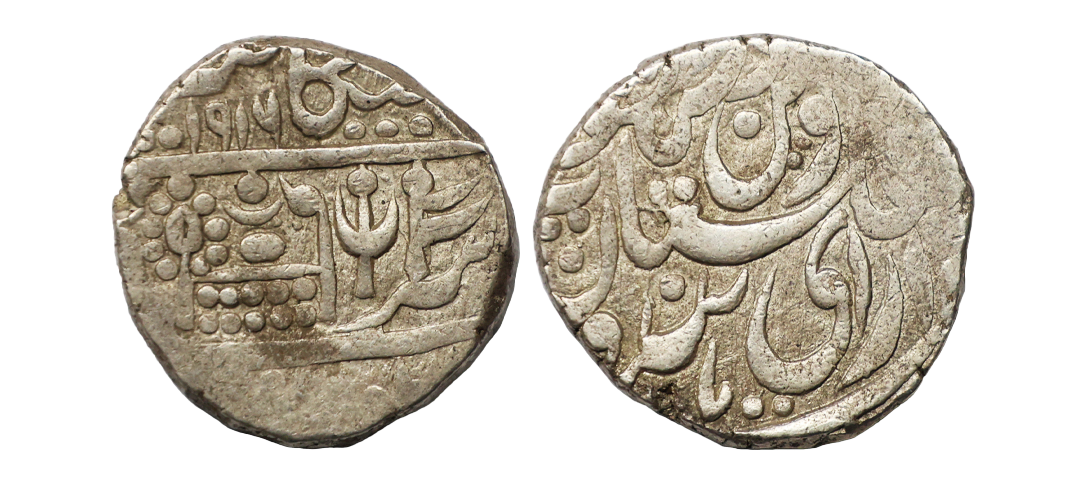 Bikaner State, Gaj Singh (AH 1159-1201, 1746-1786 AD), INO Alamgir II (AH 1167-1173, 1754-1759 AD), Silver Rupee, 11.32 gms, Baldat Bikaner Mint, RY 15, KM # 10, very fine, scarce.