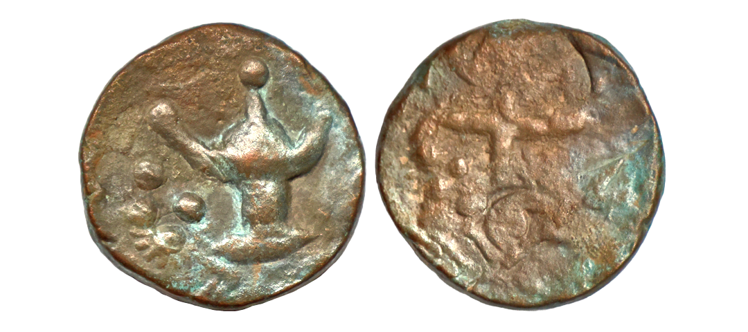 Dhar State, Anonymous Issue, Copper Paisa, 9.93 gms, Obv. Chirag(oil lamp), Rev. sword, very fine, rare.