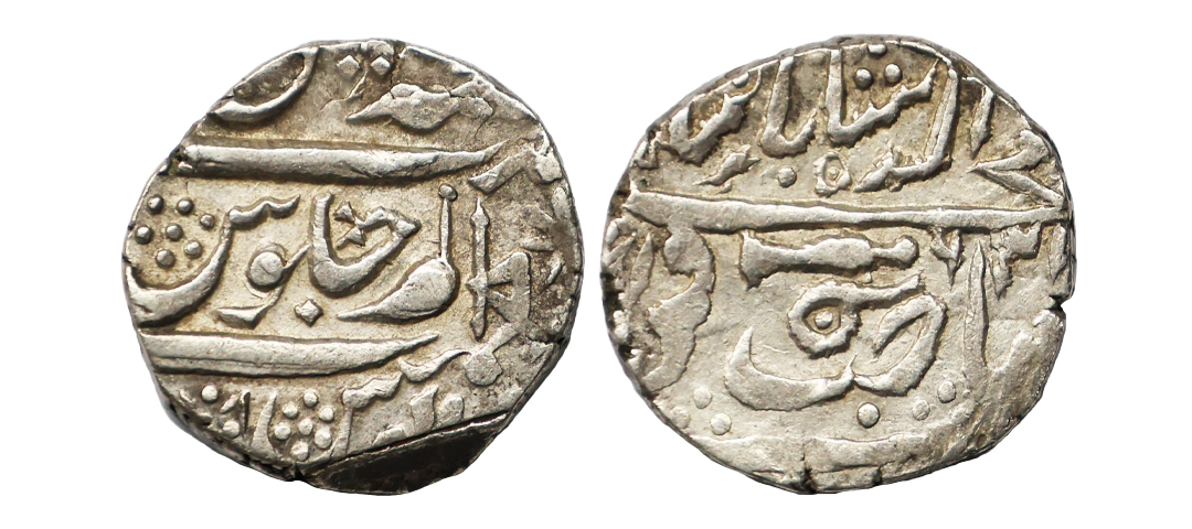 Garhwal State, Girvan Yuddha (1806-1813 AD), INO Muhammad Akbar II, Silver Timasha, 2.15 gms, Srinagar Mint, fine+, very scarce.