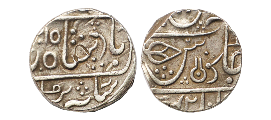 Indore State, INO Shah Alam II (AH 1174-1221, 1759-1806 AD), Silver Rupee, 11.10 gms, AH 1267, KM #76, very fine, scarce.