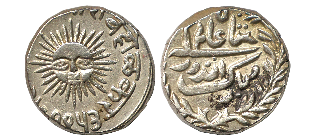 Indore State, Shivaji Rao Holkar (VS 1943-1960 1886-1903 AD), Posthumously in the name of Shah Alam II, Silver ½ Rupee, 5.57 gms, Indore Mint, VS 1952, KM #43, very fine+, rare.