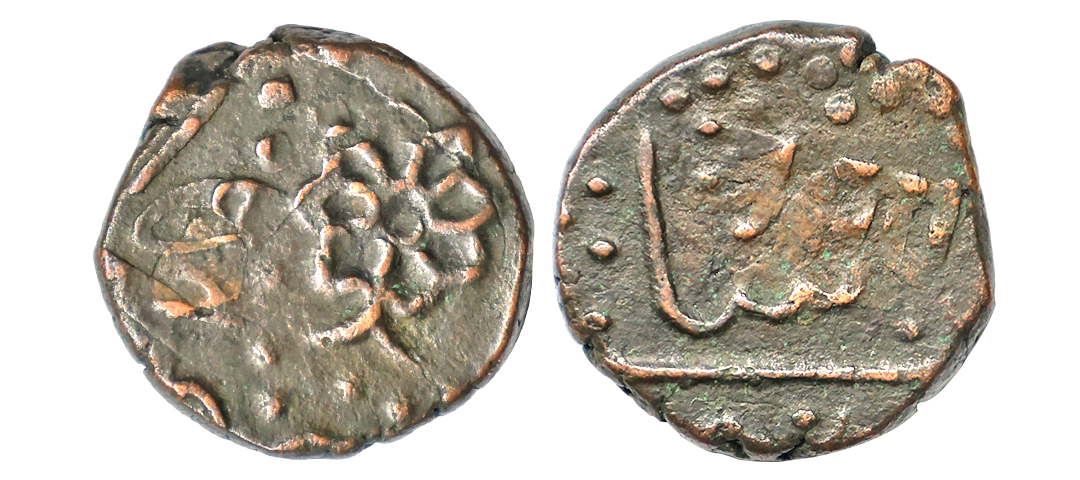 Lunavada State, Wakhat Singh (VS 1924-1986, 1867-1929 AD), Copper ½ Paisa, 3.88 gms, flower symbol, very fine, very scarce.