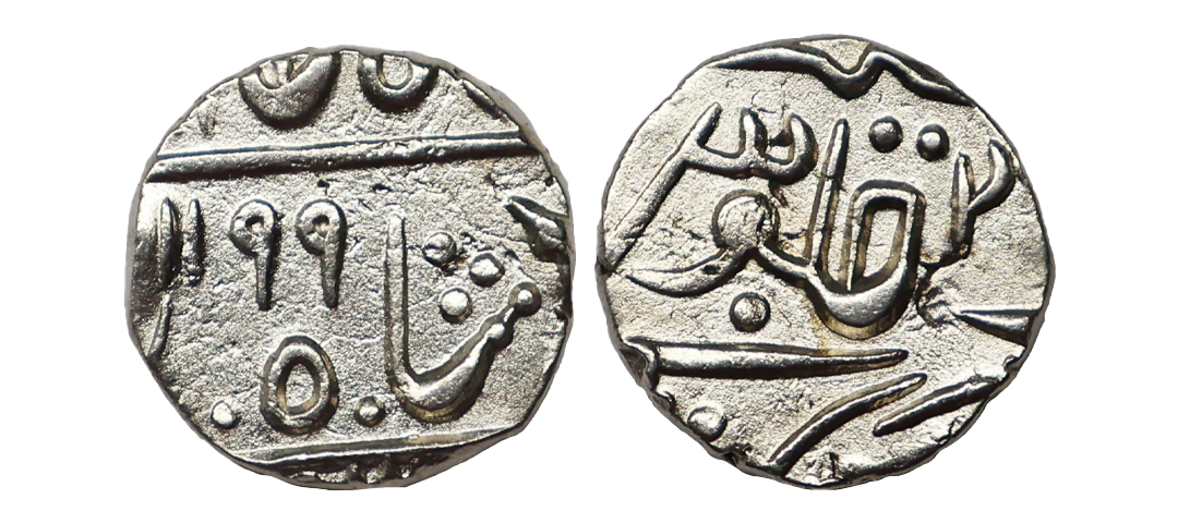 Patiala State, Rajinder Singh (VS 1933-1957, 1876-1900), INO Ahmed Shah Durrani, Silver Rupee, 10.94 gms, KM #Y6, fine+, very scarce.