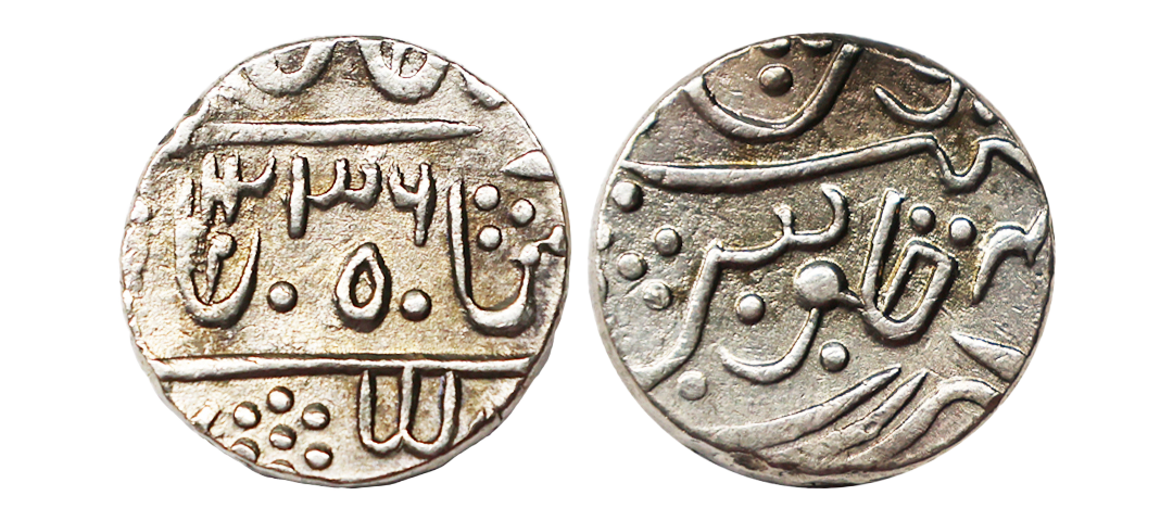Pratabgarh State, Sawant Singh (AH 1189-1241, 1775-1825 AD), INO Shah Alam II, Silver ½ Rupee, 5.30 gms, Devgadh Mint, AH 1236, RY 4x, KM #12, very fine, scarce.