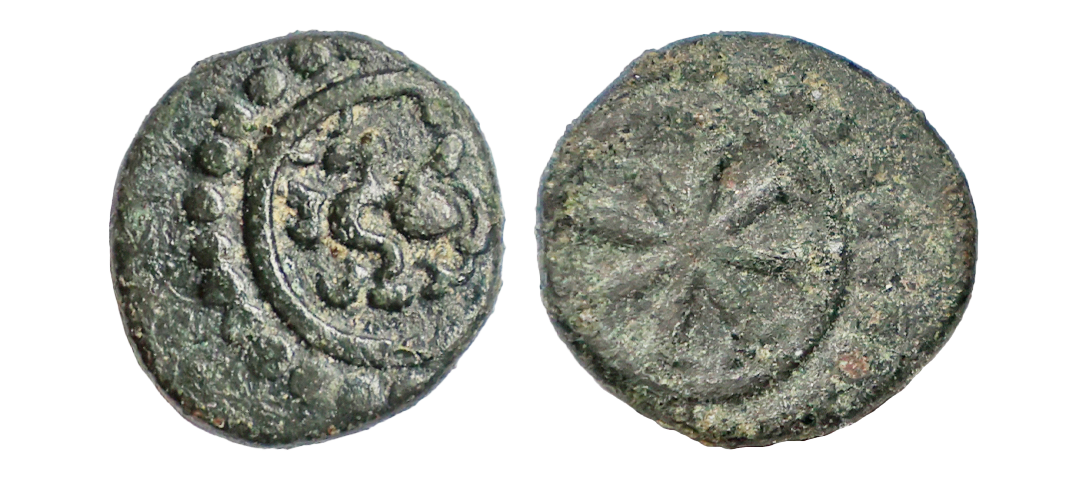 Travancore State, Martanda Varma II (1847-1860), Copper Cash, 0.57 gms, Obv. Shri Krishna, Rev. sudarsana chuckram, about very fine, very scarce.