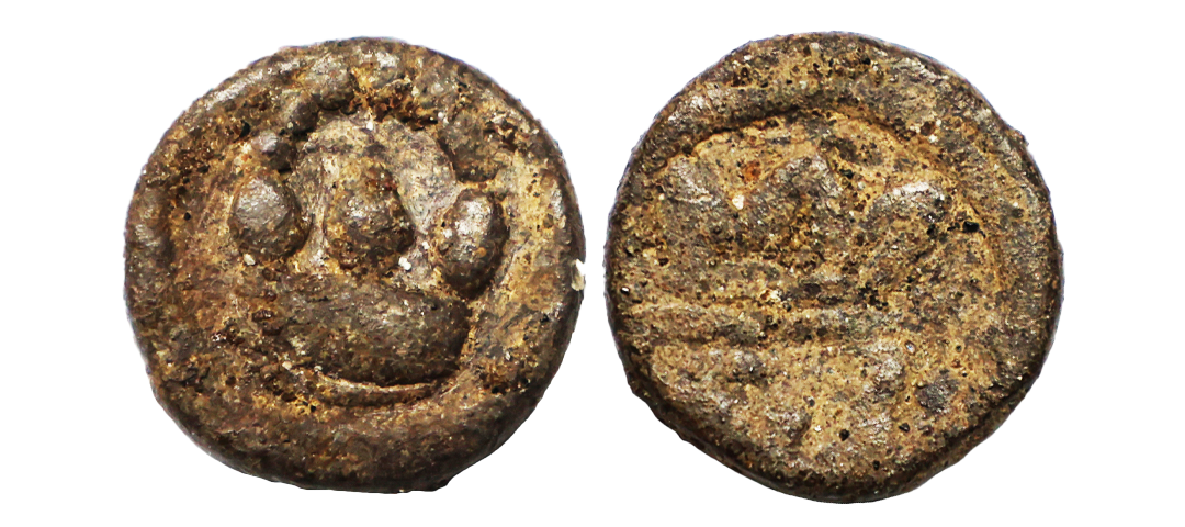 Indo Danish, Frederik III (1648-1670 AD), Lead Cash, 3.36 gms, Obv. Crowned F3 monogram, Rev. saucer-shaped base with raised center-point & high arch of pellets, perhaps representing the Indian oil lamp, KM # 62, about very fine, rare.