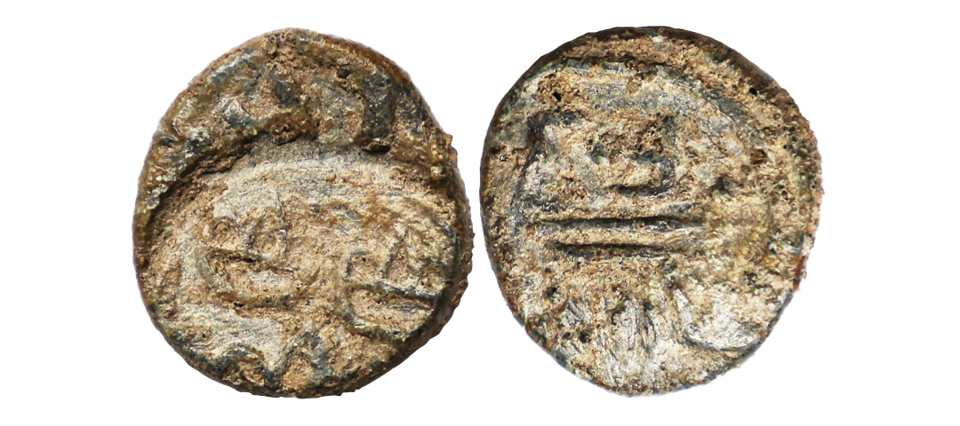 Indo Danish, Frederik III (1648-1670 AD), Lead Cash, 2.97 gms, Obv. Crowned F3 monogram, Rev. three crowns (for Denmark, Norway & Sweden), perhaps representing a ship called Tre Kroner ("three crowns "), Gray # 85, very fine, rare.