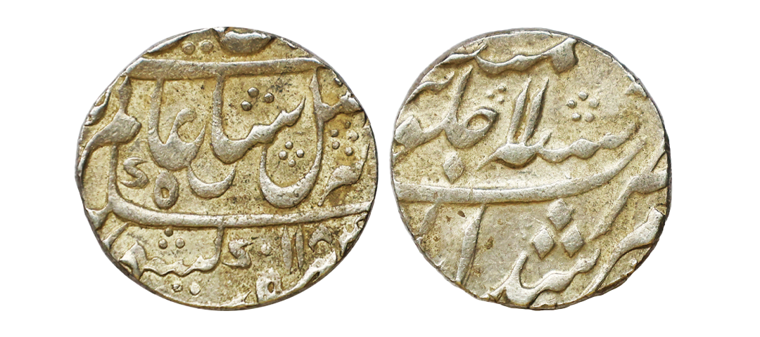 Bengal Presidency, Murshidabad Mint, Silver Rupee,11.68g, in the name of Shah Alam II, Ah 1184, RY 11, Crescent symbol on obv as a mint mark. (KM # 84.2). Very Fine+.