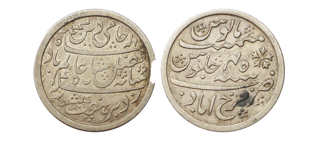 Bengal Presidency, INO Shah Alam II (AH 1174-1221 / 1759 - 1806 AD) Silver Rupee, 11.55 gms, Farrukhabad Mint, RY 45, KM #77, very fine, scarce.