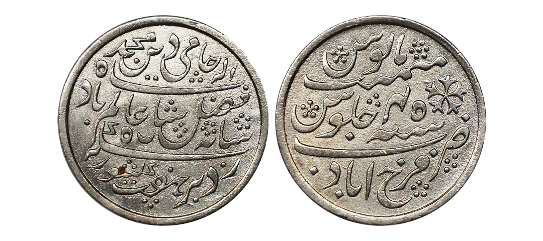 Bengal Presidency, INO Shah Alam II (AH 1174-1221 / 1759 - 1806 AD) Silver Rupee, 11.56 gms, Farrukhabad Mint, RY 45, KM #77, very fine, scarce.