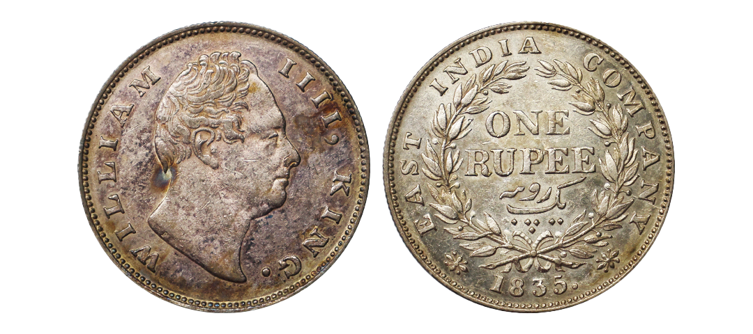 William IIII, Silver Rupee, 1835, Calcutta Mint (F Incuse on neck), Obv. A, Rev. I, 19 Berries (L-10 + R-9), AUNC, Scarce.