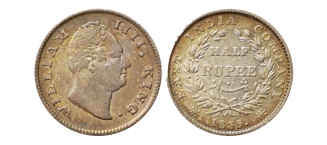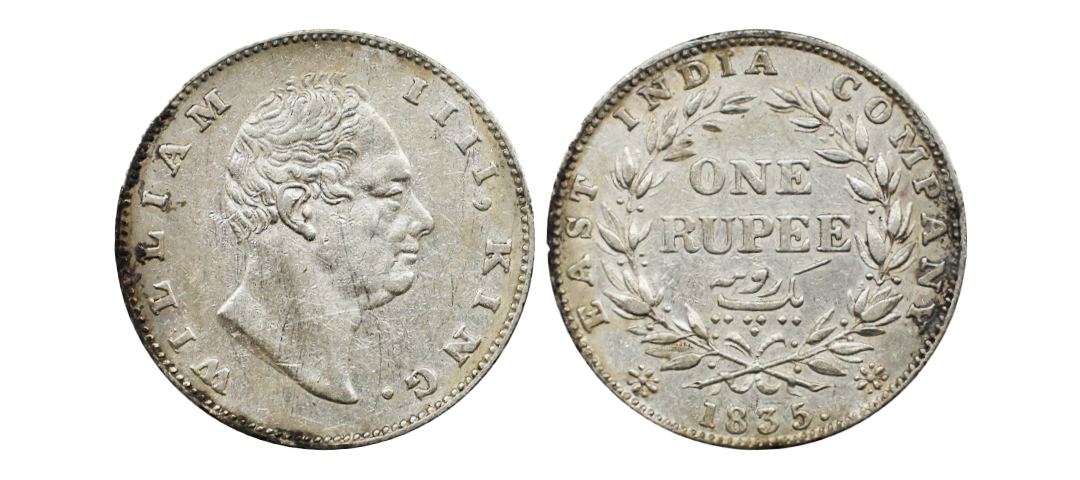 Willliam IIII, Silver Rupee, 1835, No initials type, Beautiful die doubling on Reverse, Almost 30 berries visible on Reverse, very desirable, extremely rare.
