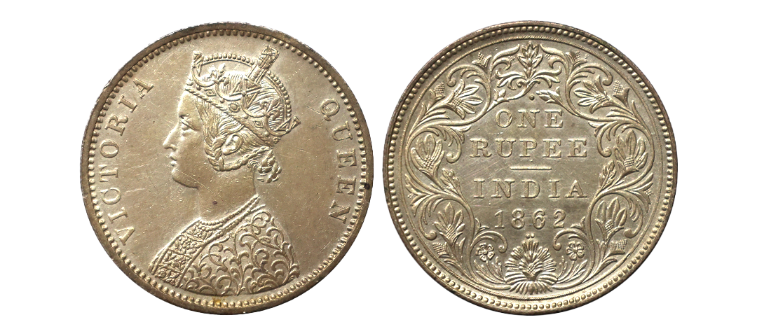 Victoria Queen, Silver Rupee, 1862, Bust A, Rev II, 1/2 Dots, Bombay Mint, AUNC, Scarce.