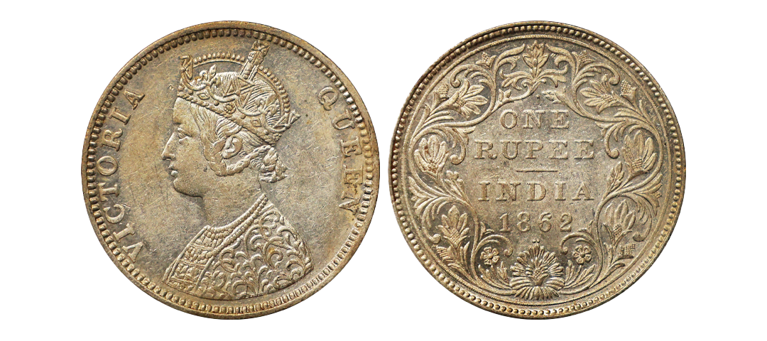 Victoria Queen, 1862, Silver Rupee, C1/II, 1/2 dots, Die doubling in Obverse, High grade, Rare variety.