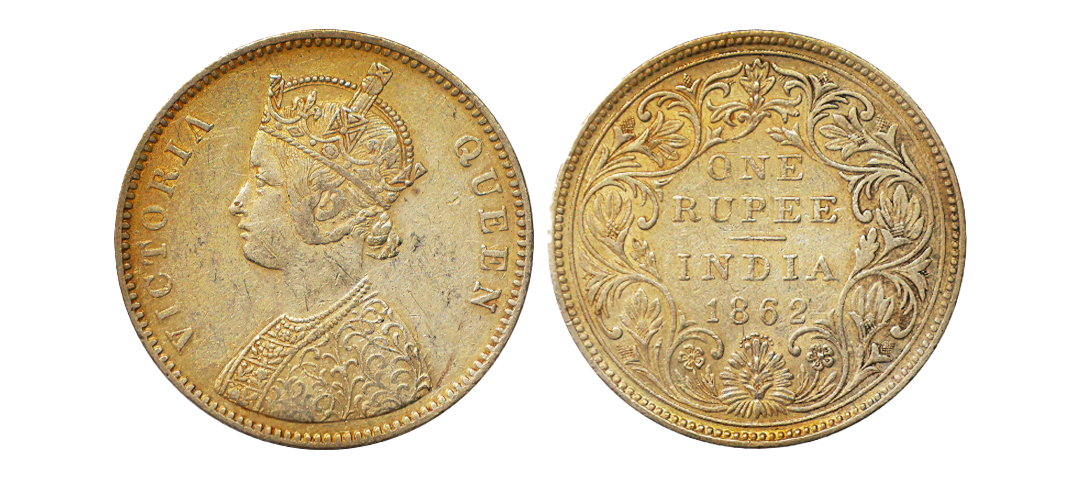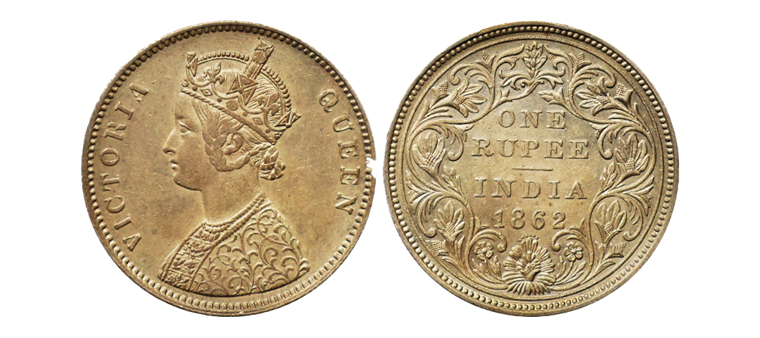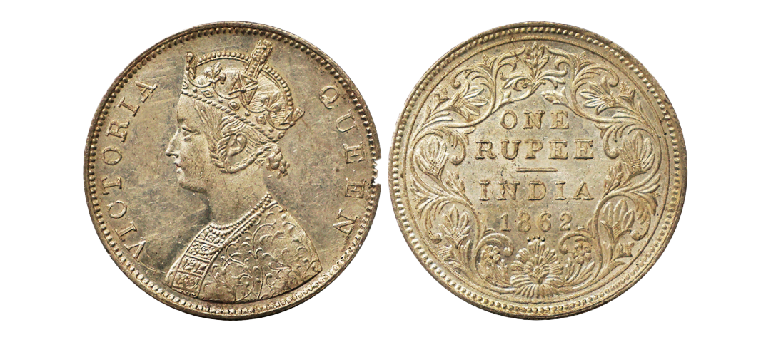 Victoria Queen, 1862, Silver Rupee, A/II, 1/3(1+2), Unlisted in any reference catalogues, extremely rare.