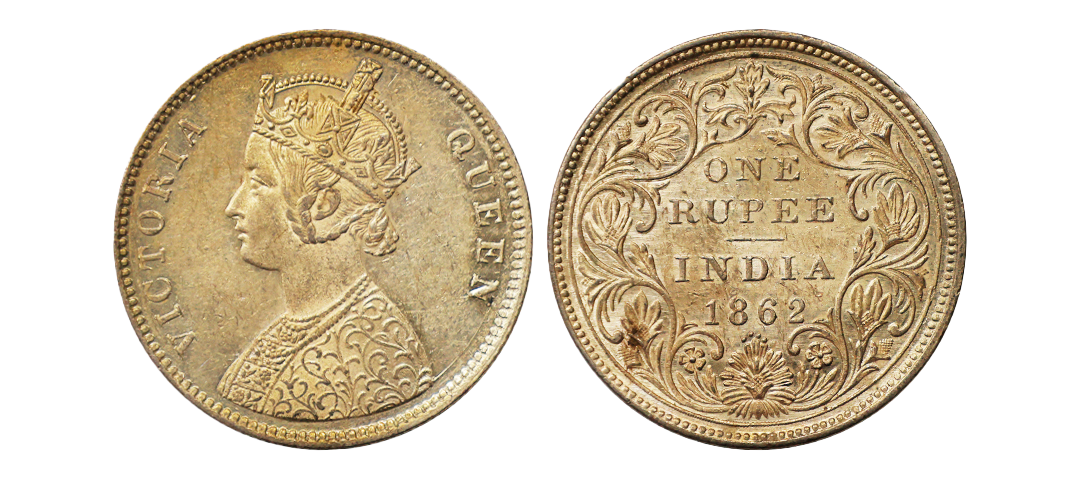 Victoria Queen, 1862, Silver Rupee, A/II, 4 pineapple variety, Gem UNC grade, Extremely Rare.
