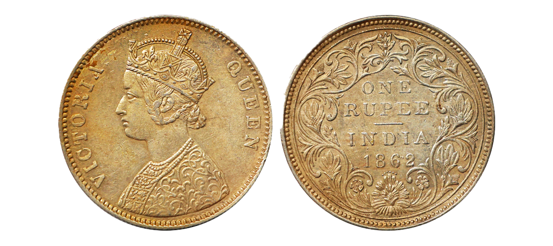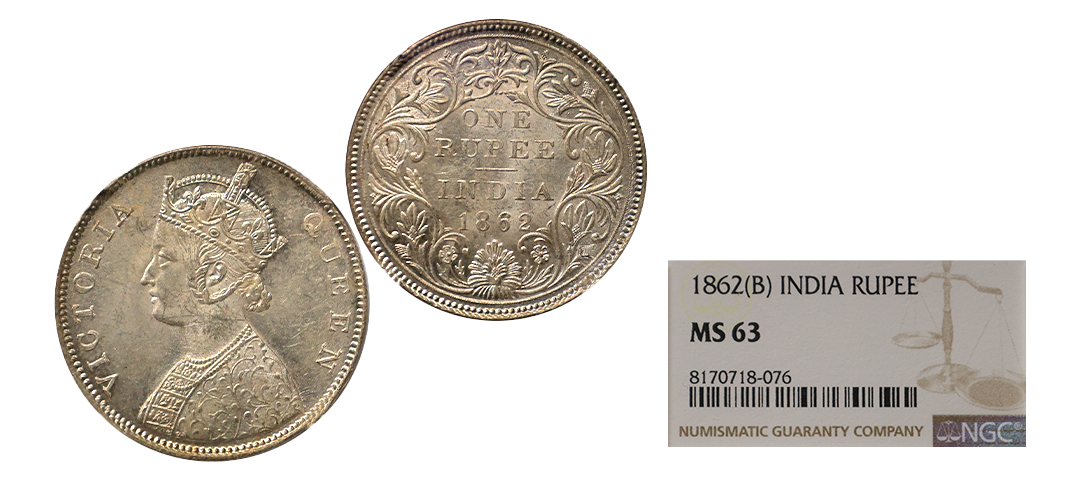 Victoria Queen, Silver Rupee, 1862, Obv. A, Rev. II, 0/7 Dots, Bombay Mint, UNC, Scarce.