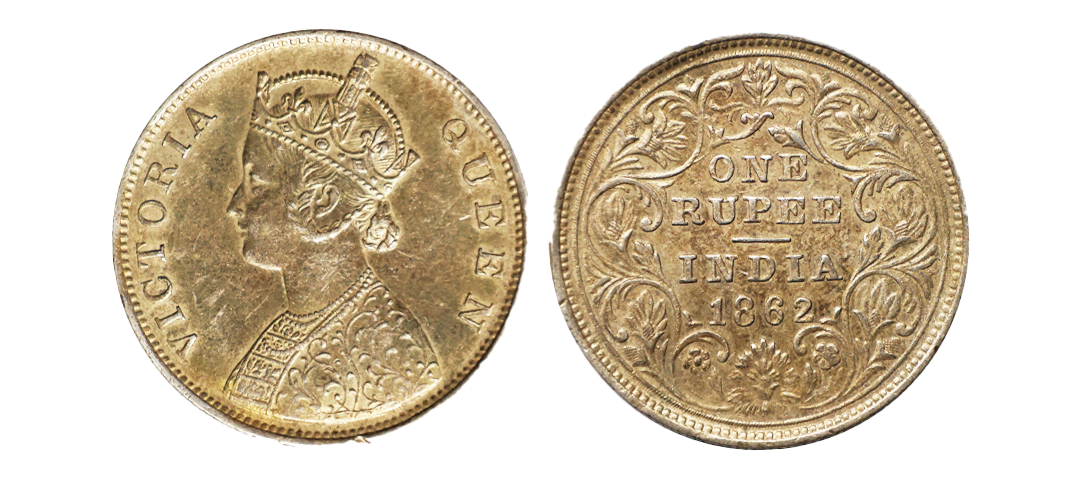 Victoria Queen, 1862, Silver Rupee, B/VII, 0/4 DOTS, Graded by NGC as MS61, extremely rare to get this variety in MS grade.