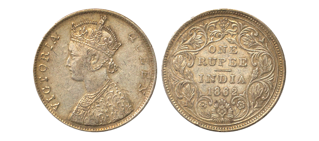 Victoria Queen, 1862, Silver Rupee, B/II, 0/6 DOTS, Very Rare Variety.