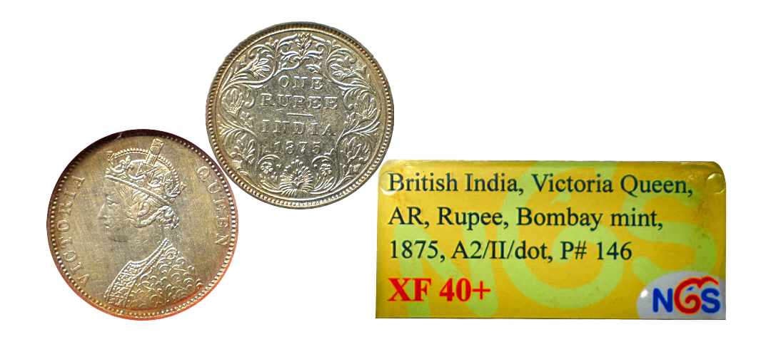 Victoria Queen, Silver Rupee, 1874, Calcutta Mint, Obv. A2, Rev. II, 7 over 7/ 4 over 4 on Date, UNC, Rare.