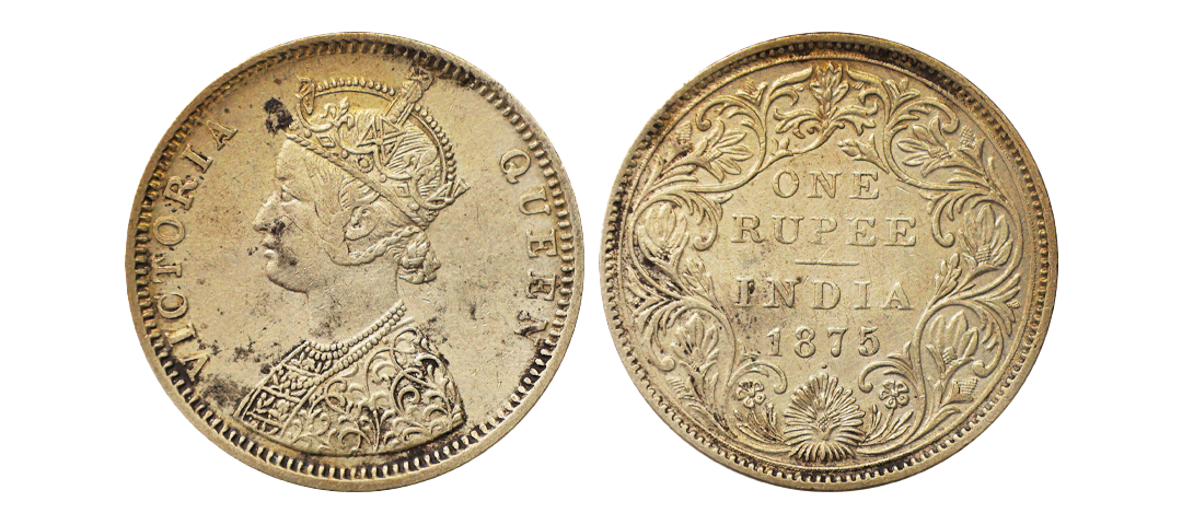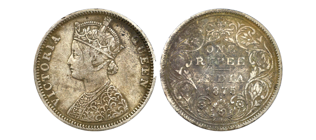 Victoria Queen, 1875, Silver Rupee, A/II, dot, Obverse D type, Crudish legends, Unlisted in any reference catalogues, extremely rare.