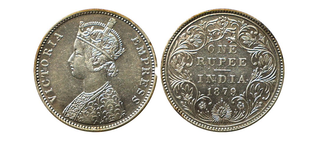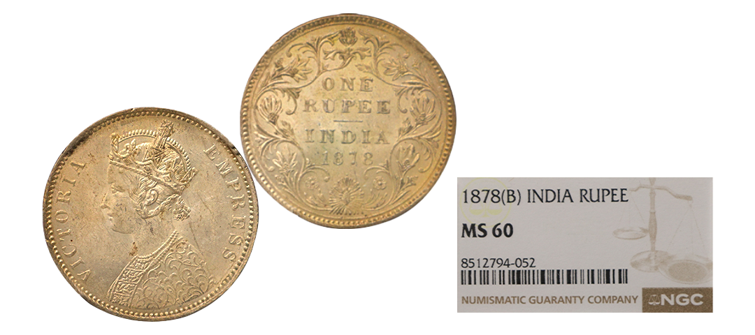 Victoria Empress, 1878, Silver Rupee, A3/II(ii), dot, bombay mint, Sharp details with even toning, Graded by NGC as MS61, Rare.