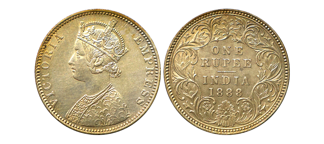 Victoria Empress, 1887, Silver Rupee, C2/I(i), Reverse B Incuse, Excellent strike and surfaces, with superb mint bloom, Graded by NGC as MS 61, Very Rare.
