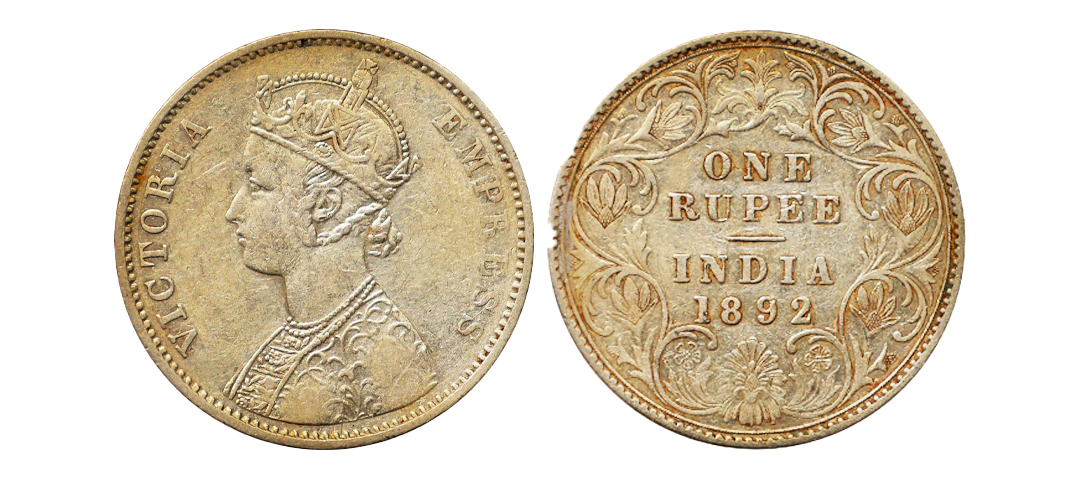 Victoria Empress, 1890, Silver Rupee, Bombay mint , C2/I, b incuse, The specimen showcases beautiful almond toning all over , highly attractive, Graded by NGC as MS61, Very rare.