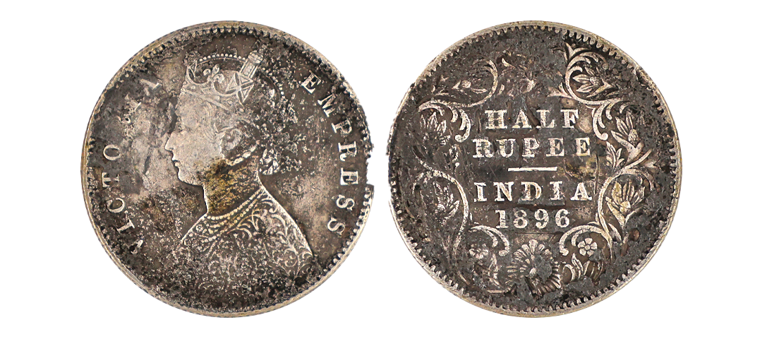 Victoria Empress, Silver 1/2 Rupee, 1896, Calcutta Mint, About Extremely Fine, Rare.