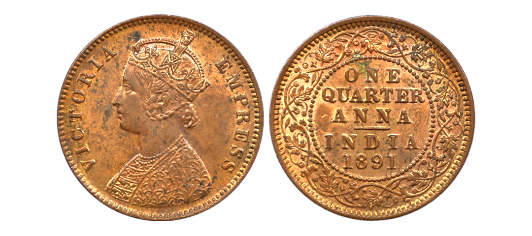 Victoria Empress, Copper One 1/4 Anna, 1880, Calcutta Mint, "C" On Bead, Graded By NGC MS64 RB.