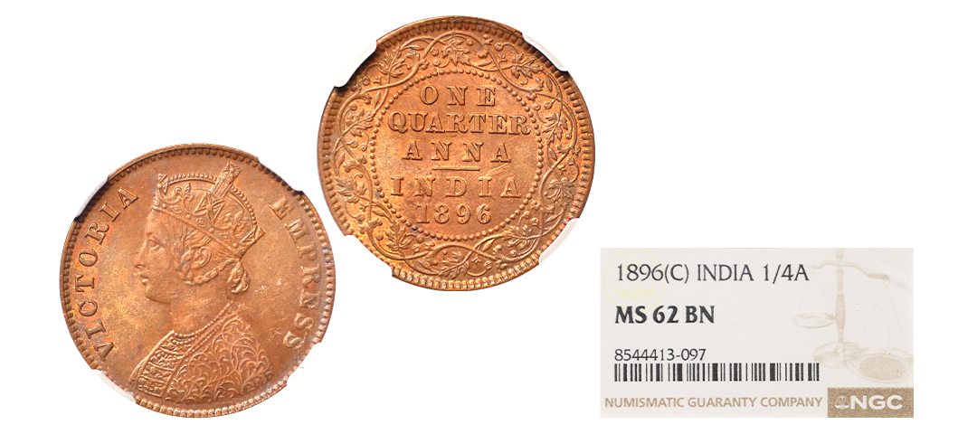 Victoria Empress, Copper One 1/4 Anna, 1891, Calcutta Mint, UNC, Very Scarce.