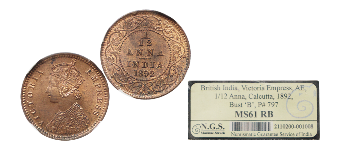 Victoria Empress, Copper 1/2 Pice, 1898, Calcutta Mint, Graded By NGC UNC Details, Altered Color.