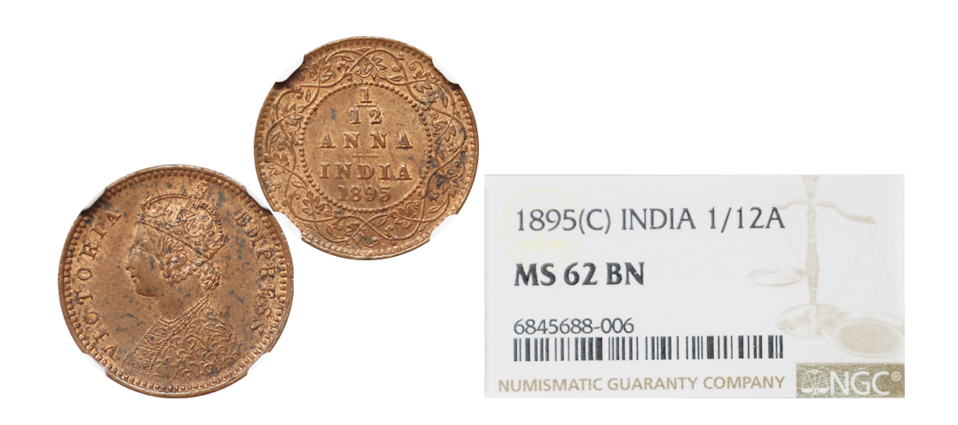 Victoria Empress, Copper 1/2 Pice, 1900, Calcutta Mint, Graded By NGC UNC Details, Altered Color.