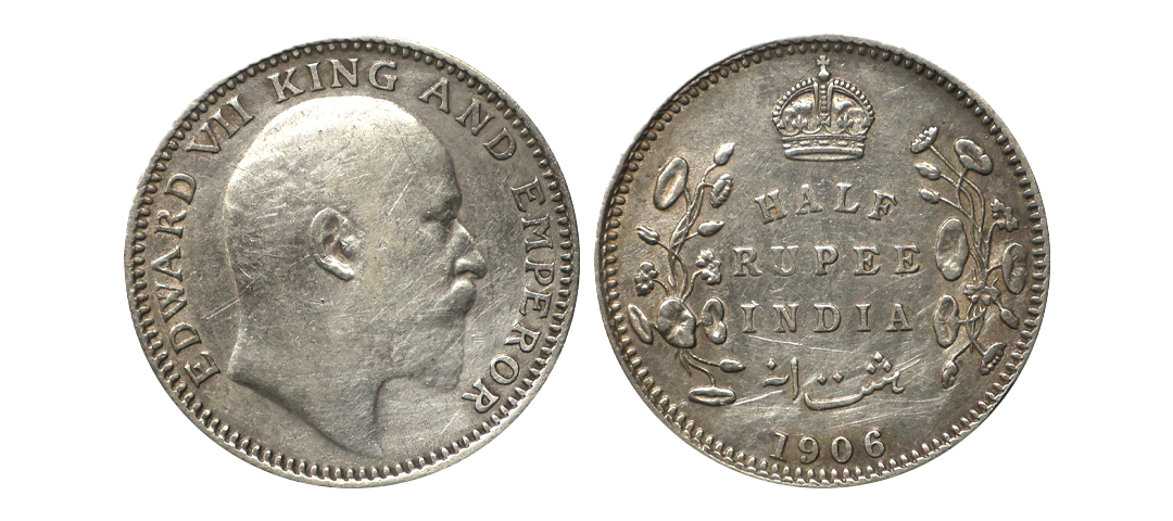 Edward VII, Silver Rupee, 1909/08 overdate, Bombay Mint, Extremely Fine. Very Clear Impression of The Undertype, Rare.